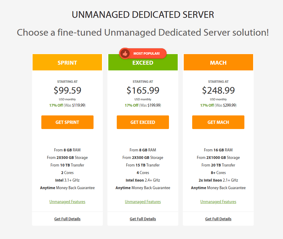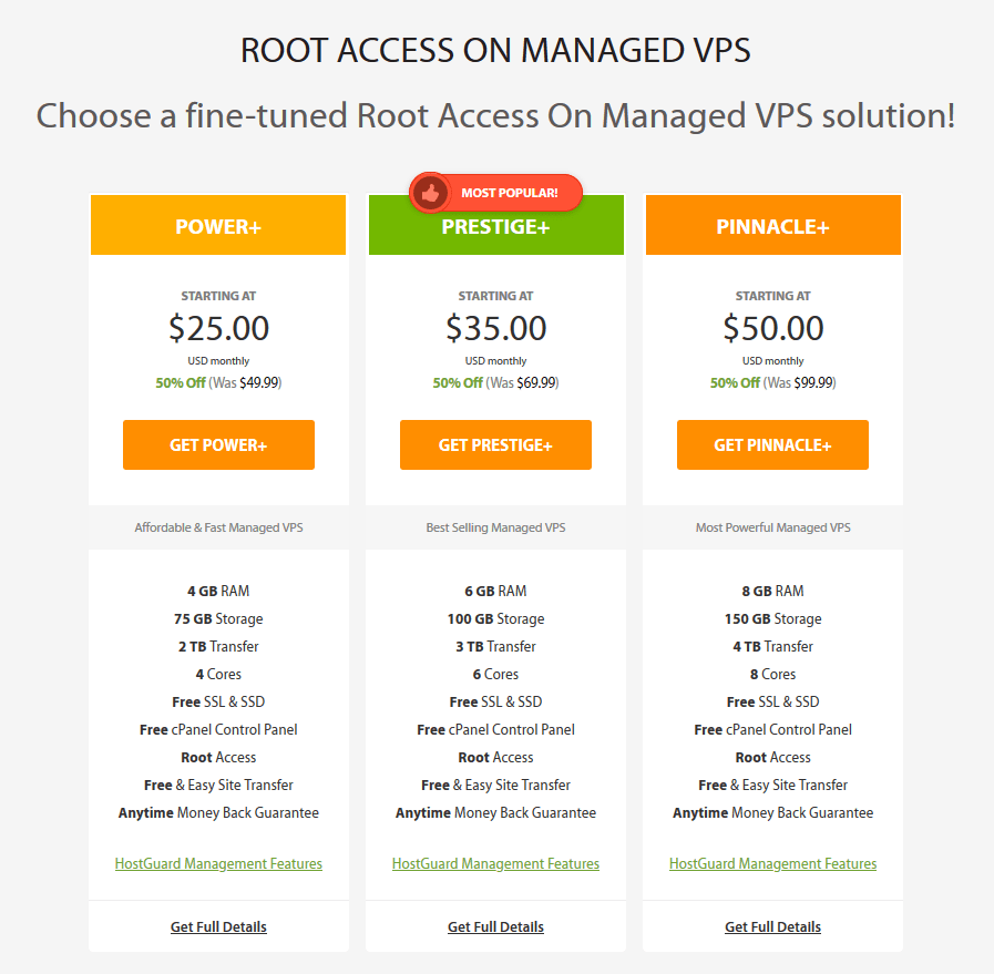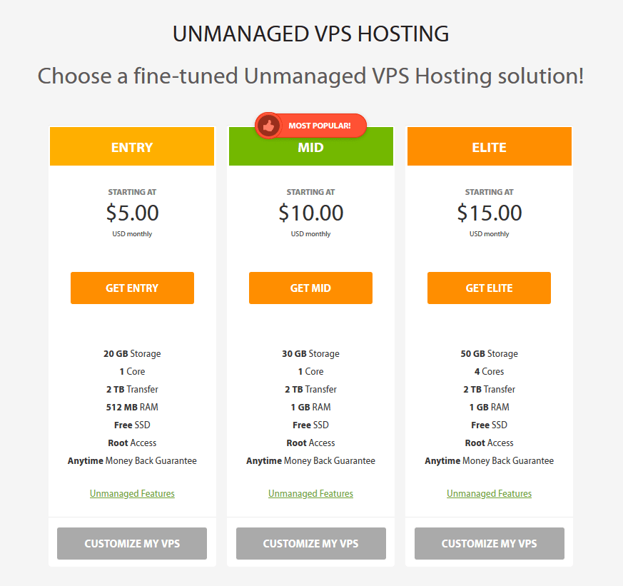 Lastly, the Unmanaged VPS plan gives you an unmanaged server with root access.