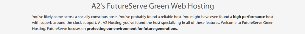 A2 Hosting is very public about their commitment to green energy practices. They’ve partnered up with Carbonfund, the NGO, to try and offset their carbon footprint and reduce its effects via the FutureServe program.