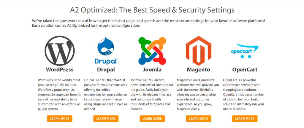 If you rely on a CMS to help run and manage your site, A2 Hosting has got you covered. Setting up a CMS is super easy, and they also offer tools that help optimize your site’s loading times.