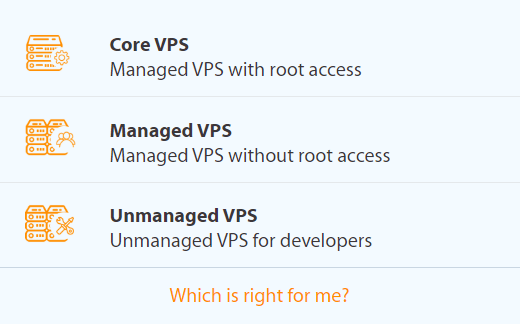 A2 Hosting offers three VPS types of plans: Core VPS, Managed VPS, and Unmanaged VPS.