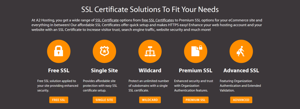 A2 Hosting offers a free SSL certificate for whatever website you’re hosting, but you can pick from premium options to get enterprise-grade protection.