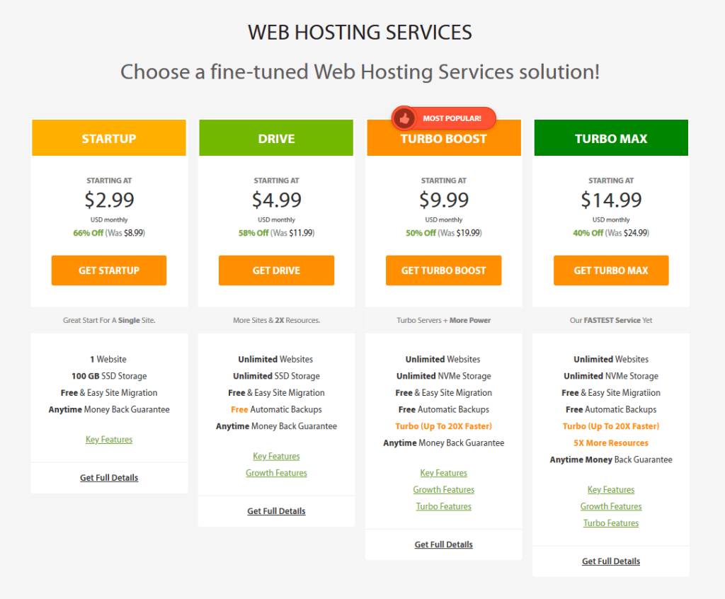 A2 Hosting offers a multitude of plans, which ensures that you find the hosting solution you need for the price you want.