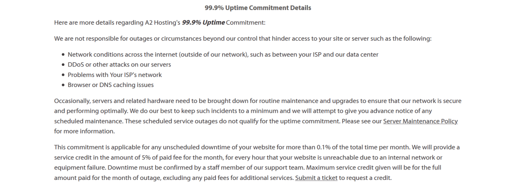 Also, if unscheduled downtime of your website is more than 0.1% of the total time per month, you will be given a service credit of 5% of the fee for the month!