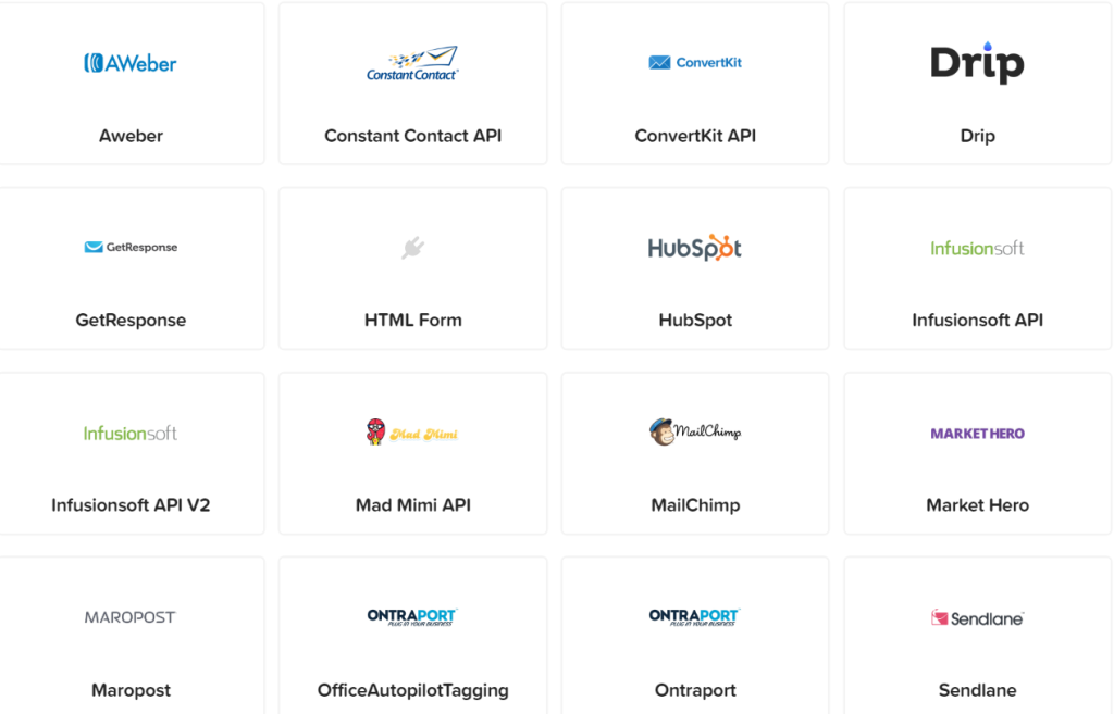 All the top email service providers like Aweber, ConvertKit, GetResponse, MailChimp could be integrated into your account by just providing your API key.