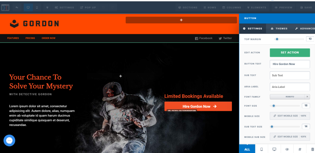 All the pages are divided into multiple sections that can have any number of rows and columns. Customizing a page through their builder is a seamless process.