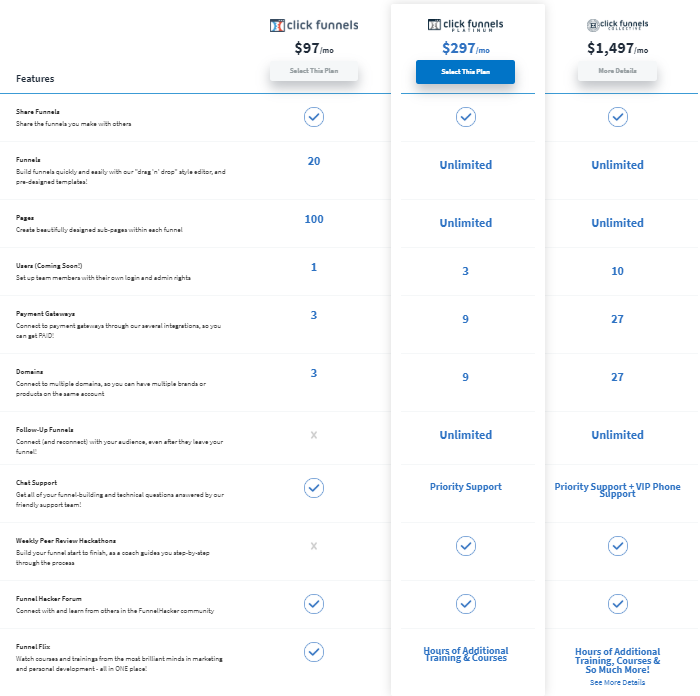 As you might already know, ClickFunnels come in two different plans, standard and platinum plans.