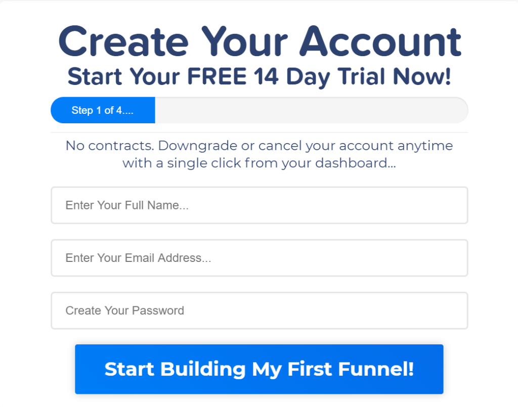 To create your account, go to their website ClickFunnels.com and click on the Start Free 14 Days Trial Now.