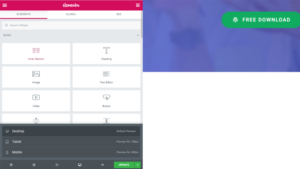 The free version of Elementor is SEO and mobile-friendly, along with some handy tools to make your job easy.