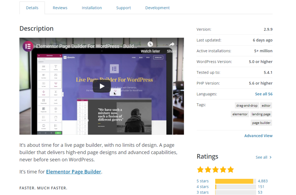 Since its release in mid-2016, Elementor has more than 5 million installs and an impressive 4.8-star rating on WordPress.org.