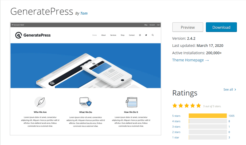 The core theme is 100 percent free. According to WordPress.org, GP is active on over 200,000 sites and has also managed to maintain an impressive 5-star rating on over 1000 reviews.