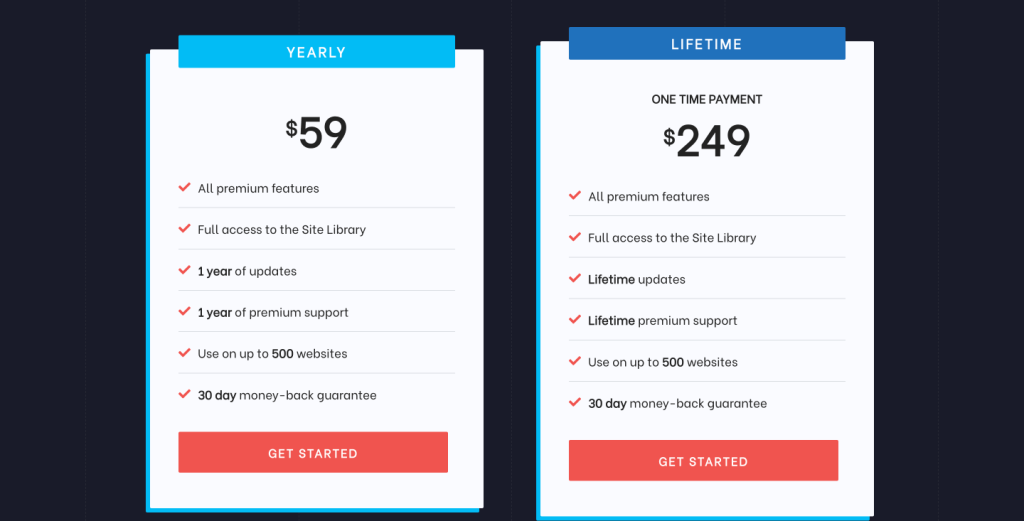 Their paid version includes some extra features like Site Library, which helps you to import some demo sites, that would give you a head start on your projects. We will talk about this later in this article.