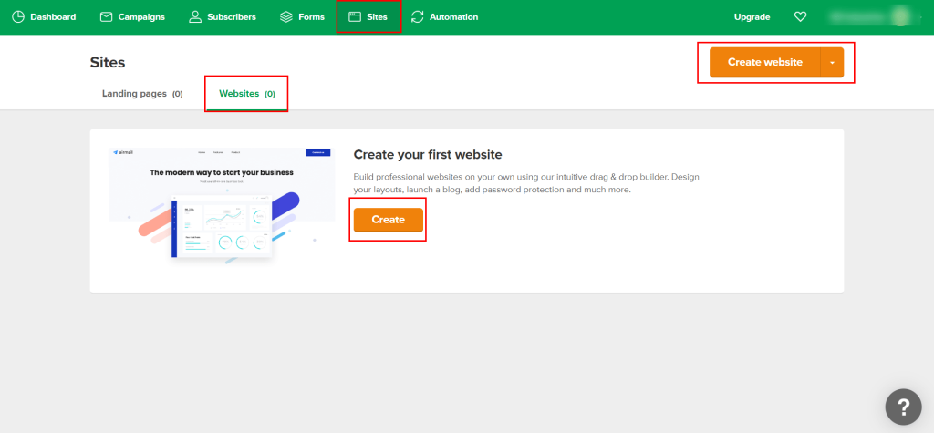 The website builder is easy to access. All you need to do is navigate to the Sites section and click on the Websites tab.