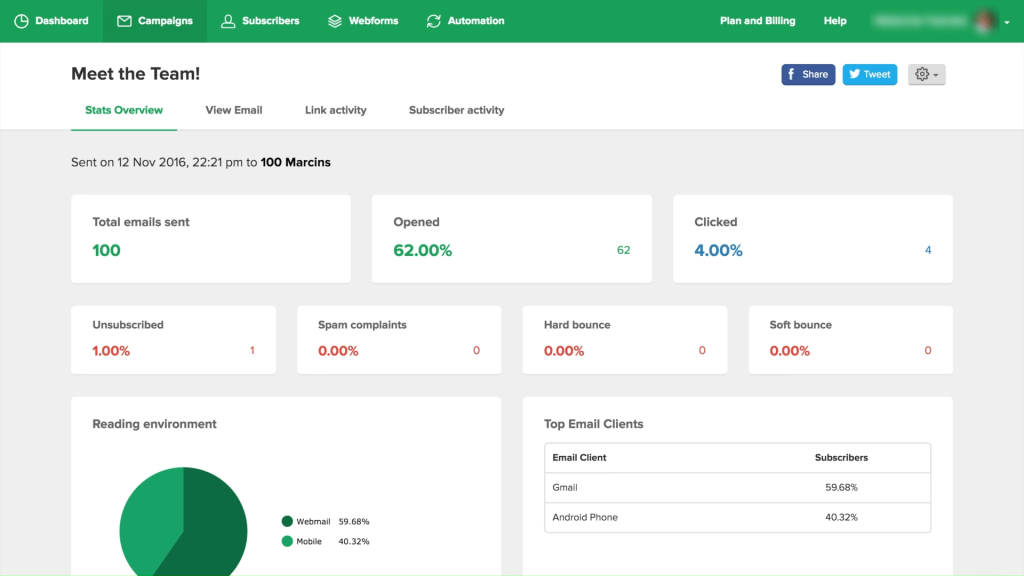 Reviewing MailerLite, I found its reporting pages to be easy to read.