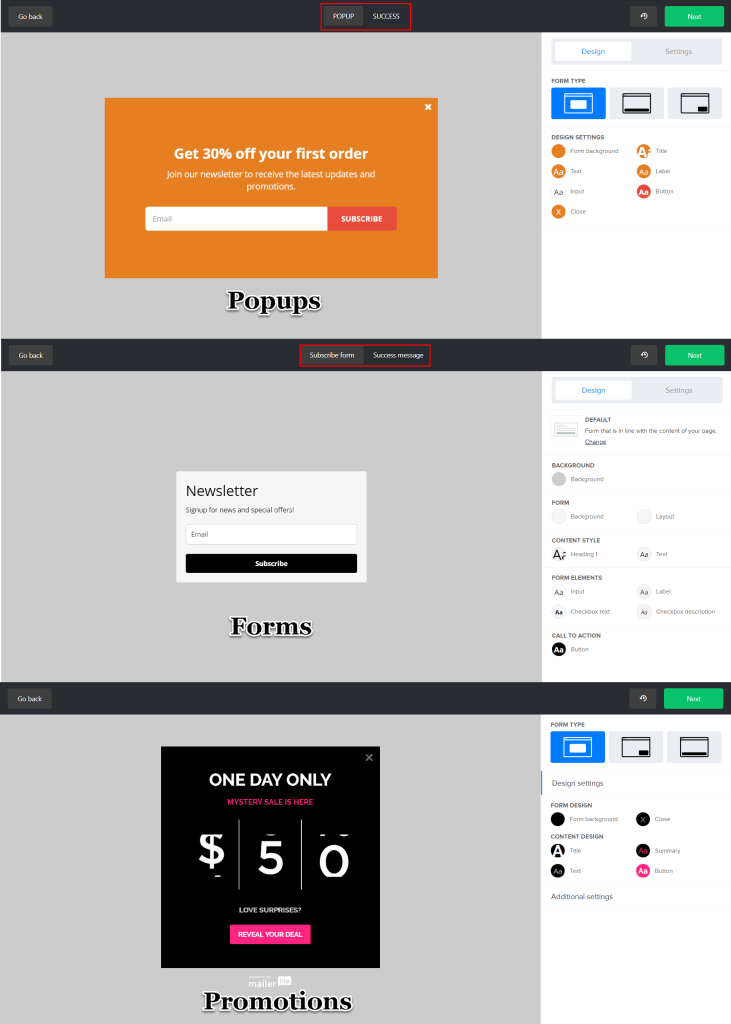 MailerLite offers a host of customizable templates for all of these elements, making the design process both faster and easier.