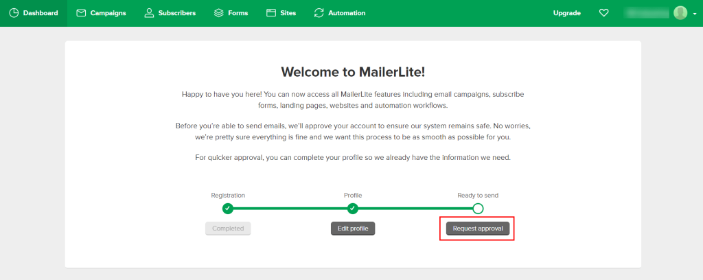 Getting an account on MailerLite requires you to get approval from the company, for which you must describe your business and give them all the details.