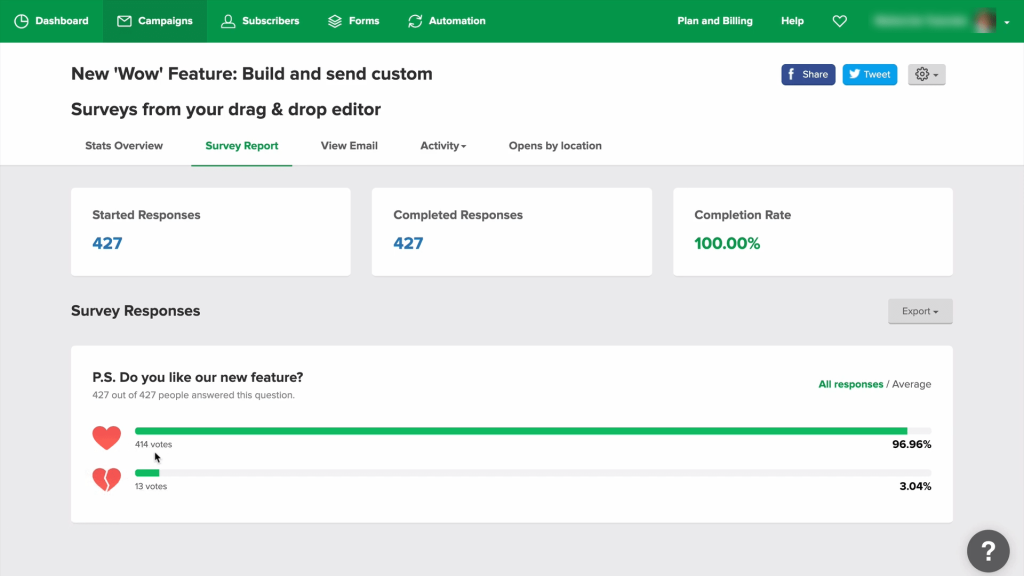 However, both MailChimp and ConvertKit skimp out on surveys; they do not offer the features to create interactive surveys for emails.